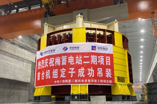 11月8日,梅蓄電站二期項目首臺(5號)機組定子吊裝完成,為2025年首臺機投產(chǎn)發(fā)電奠定了堅實基礎。