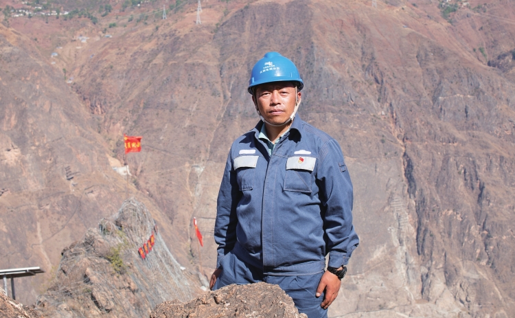 2019年,曾雷擔任烏東德電站至昆北換流站500千伏交流送出工程1標段項目經理和黨員突擊隊隊長。電站右岸山坡出線段的A2號塔,塔位所在山體坡度達70度,一不留神就會滑下百米深的懸崖,這樣的極端地形,是曾雷工作22年來第一次遇到。