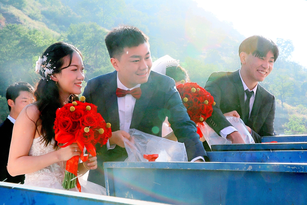 17對(duì)新人還一同前往觀音巖水電站營(yíng)地植樹,栽樹、培土、澆水,現(xiàn)場(chǎng)熱鬧非凡。“今天,我們一起種下‘幸福樹’,希望我們共同成長(zhǎng)、相互扶持、相互依偎、兩情繾綣。”來自芒里水電站的陳曉東、周穎夫婦攜手種下小樹苗,并許下美好的心愿。