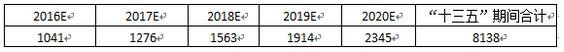 在2006至2011年的規(guī)?;こ虘秒A段,行業(yè)產(chǎn)值復合年均增速為21%,在2011年至2015年的全面推廣階段這一數(shù)值達到30%。目前雖然我國城鎮(zhèn)污水處理率已達90%,污水處理產(chǎn)能增長空間有限,但考慮到存量處理能力改造,再生水回用和工業(yè)廢水處理的潛在市場空間,以及排放指標進一步收嚴,民眾對于選擇先進環(huán)保技術(shù)的心理傾向等因素,“十三五”期間膜法水處理行業(yè)產(chǎn)值年均增速大概率落在20%-25%。取中位數(shù)22.5%進行計算,到2020年行業(yè)產(chǎn)值達到約2345億,整個“十三五”膜法水處理產(chǎn)值可達8138億元。