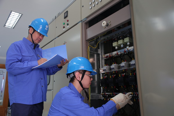 中國電力網(wǎng)訊 8月20日,國網(wǎng)寧??h供電公司綜合能源事業(yè)部工作人員在寧海順益塑料制品有限公司,為試運行“滿月”的智能配電柜開展“體檢”,通過調(diào)試檢測,查看相關(guān)數(shù)據(jù)并進行采集分析。