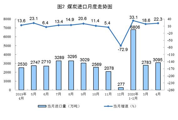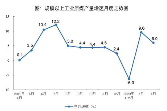 原煤生產(chǎn)增長較快。4月份,生產(chǎn)原煤3.2億噸,同比增長6.0%,增速比上月回落3.6個百分點;日均產(chǎn)量1074萬噸,環(huán)比減少14萬噸。1—4月份,生產(chǎn)原煤11.5億噸,同比增長1.3%。