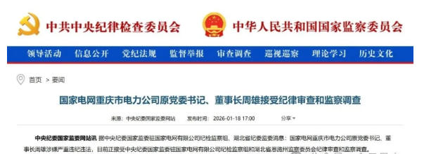 國家電網(wǎng)重慶市電力公司原黨委書記、董事長周雄涉嫌嚴(yán)重違紀(jì)違法,目前正接受中央紀(jì)委國家監(jiān)委駐國家電網(wǎng)有限公司紀(jì)檢監(jiān)察組和湖北省恩施州監(jiān)察委員會紀(jì)律審查和監(jiān)察調(diào)查。