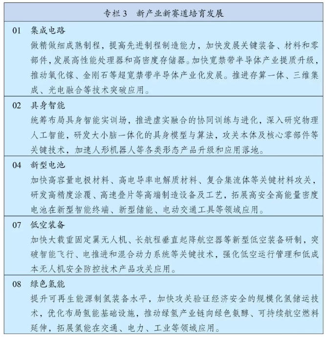 《綱要》提出,要前瞻布局未來(lái)產(chǎn)業(yè),瞄準(zhǔn)引領(lǐng)未來(lái)發(fā)展重點(diǎn)領(lǐng)域,構(gòu)建未來(lái)產(chǎn)業(yè)全鏈條培育體系,推動(dòng)量子科技、生物制造、氫能和核聚變能、腦機(jī)接口、具身智能、第六代移動(dòng)通信等成為新的經(jīng)濟(jì)增長(zhǎng)點(diǎn)。加強(qiáng)未來(lái)產(chǎn)業(yè)識(shí)別和動(dòng)態(tài)調(diào)整,強(qiáng)化基礎(chǔ)性、前沿性、顛覆性技術(shù)布局。