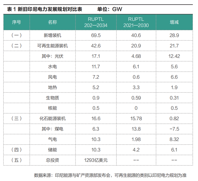 印尼清潔能源轉(zhuǎn)型受挫但目標(biāo)未變。2025年5月,印尼國家電力公司(PLN)正式發(fā)布了印尼電力發(fā)展規(guī)劃2025—2034(以下簡稱為《RUPTL2025—2034》)。從這版規(guī)劃中可以看出,印尼政府的清潔能源轉(zhuǎn)型目標(biāo)并未改變,可再生能源裝機(jī)仍然會得到大力發(fā)展。燃煤發(fā)電機(jī)組大幅減少,氣電機(jī)組增加。對比十年規(guī)劃,可以看出印尼政府仍然會加大可再生能源裝機(jī)的投資規(guī)模。2025年至2034年期間,印尼投資建設(shè)的光伏、風(fēng)電裝機(jī)將大幅增加,煤電裝機(jī)將大幅減少。另外,印尼新版規(guī)劃中,約70%的投資額(949億美元)分配給了獨立發(fā)電商,其中新能源投資額為813億美元。印尼政府對未來經(jīng)濟(jì)增長的樂觀支持著電力裝機(jī)的增長。據(jù)稱,印尼如此大規(guī)模的電力發(fā)展計劃是為了支撐實現(xiàn)印尼2025—2029年間,年均增速8%的經(jīng)濟(jì)增長目標(biāo)。
