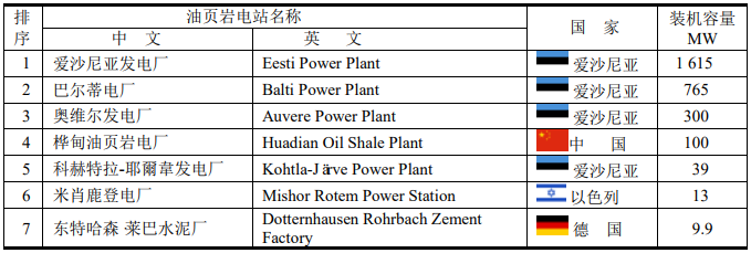 表中油頁巖電站所使用的燃料不是頁巖油,而是油頁巖。